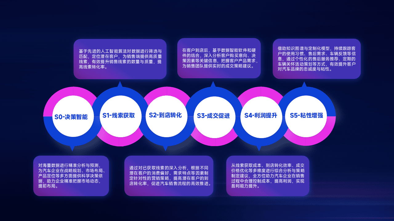 通过拓宽潜在客户来源、、、、优化线索分配并提高到店转化率,,,以增强销售效率。。同时,,,利用线索数据不断优化分析模型,,,,有效提升转化率,,扩大营销影响力。。。。
